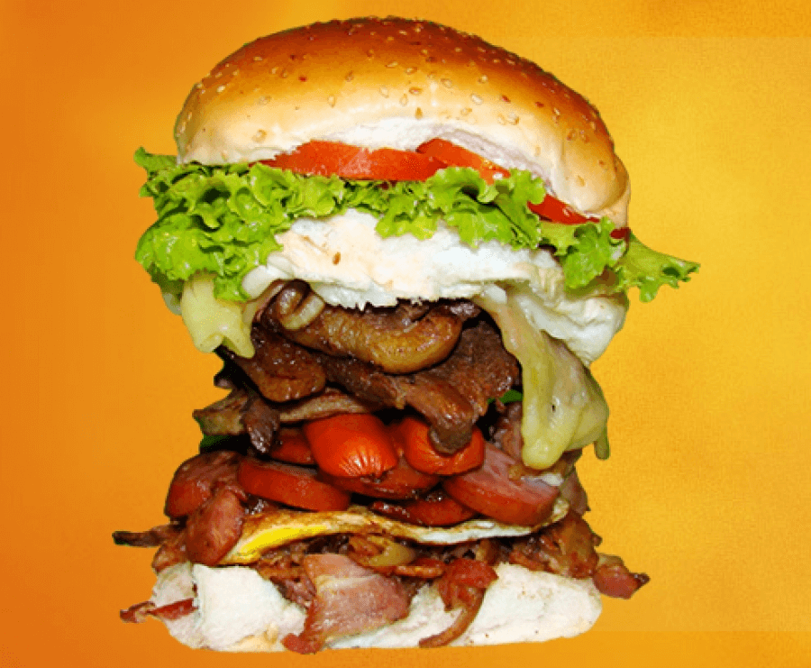 (Pão, salada, ovo, presunto, hambúrguer, catupiry, queijo, calabresa, bacon, cheddar, salsicha e frango )