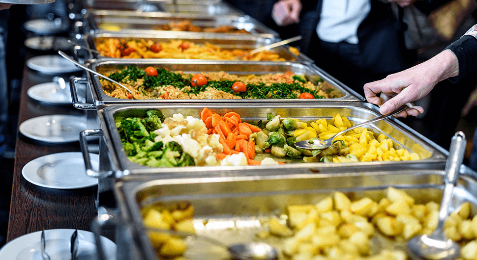 Lasanha, fruta, panqueca e sobremesa